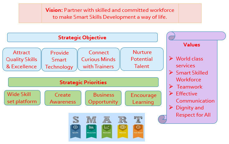 This platform, also gives an opportunity to all communities; be it Corporates, big/ small businesses people, individuals; who are looking out to Learn, Train and Earn. The portal objective is to provide Skill development information access to anyone and everyone anywhere in the world. It has flexibility for continuous learning and earning by logging one time and using it over entire lifetime through Smart Technology (Mobile phones, Internet etc.)